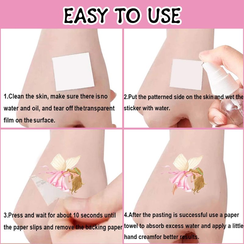 24 sheets fairy temporary tattoo stickers with a variety of pastel watercolor styel, creates a whimsical, fairytale-like atmosphere that is sure to delight all who see it.