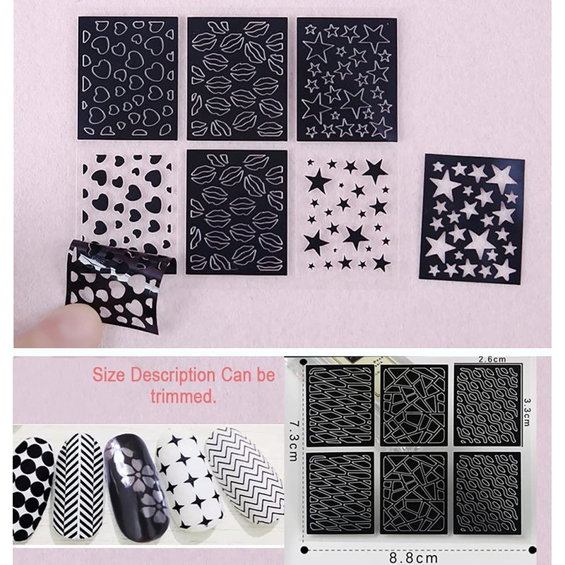 - Easy to use: just apply base coat, let it dry, stick the stencil on the nail, then apply other colors of nail polish, peel off the stencil after it is completely dry. Stencil size can be freely trimmed Suitable for all nails.