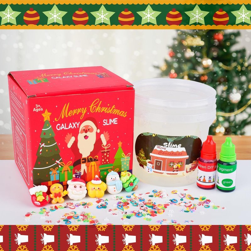- GREAT SLIME KIT FOR GIRLS AND BOYS: You will get 20 OZ pre-made vat of crystal slime with 6 Christmas collection charms including Father Christmas, Snowman, Christmas Tree, Star, Christmas Stocking, Gingerbread Villain, easy to store and put back in the slime bucket when not in use!