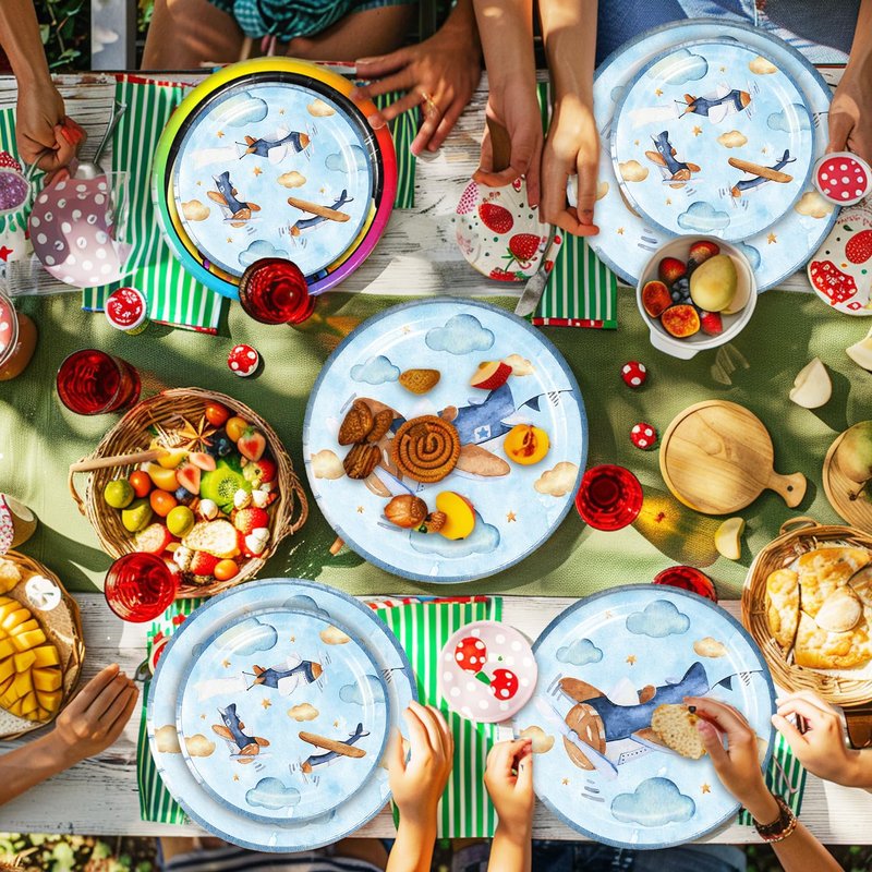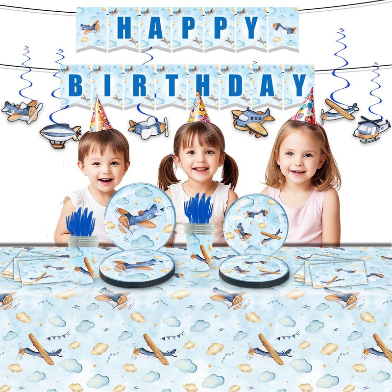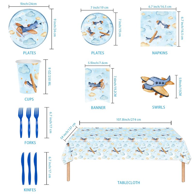- 【Easy to Use】These aircraft birthday decoration tableware set is completed, no need to spend energy to find other parts, save your time, after the party directly throw away, very easy, enjoy your party.