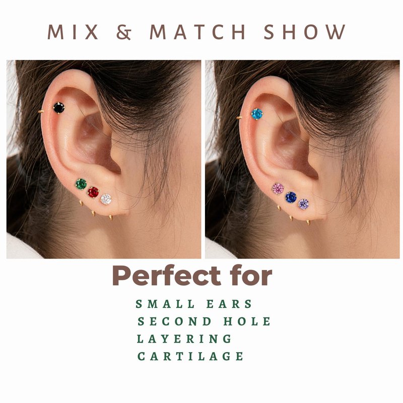 - [ Dainty Gold Earrings for Women ]: 14k gold hoop earrings for women and girls, dainty & cute , with 14k real gold plated on 925 sterling silver, nickel free and lead free, hypoallergenic earrings for sensitive ears, this gold huggie earrings are settled with AAAAA+ Cubic zirconia, Green Emerald,Blue Aquamarine, Purple Amethyst, Red Garnet, Pink Crystal, Black CZ, Turquoise, Pearl, Blue Sapphire, super sparking & eye- catching, perfect for everyday wear