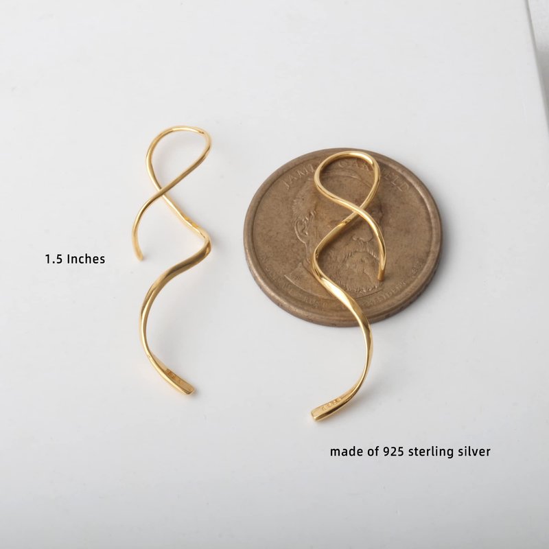 14K Gold Spiral Threader Earrings Sterling Silver Drop Dangling Handmade Curved Pull Through Earrings