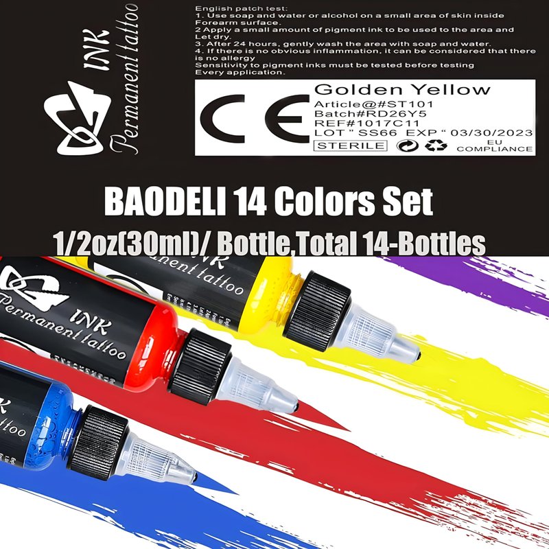 14Pcs Tattoo Ink 14 Colors Set 1 oz 30ml/Bottle Tattoo Inks Pigment Kit for 3D Makeup Beauty Skin Body Art
