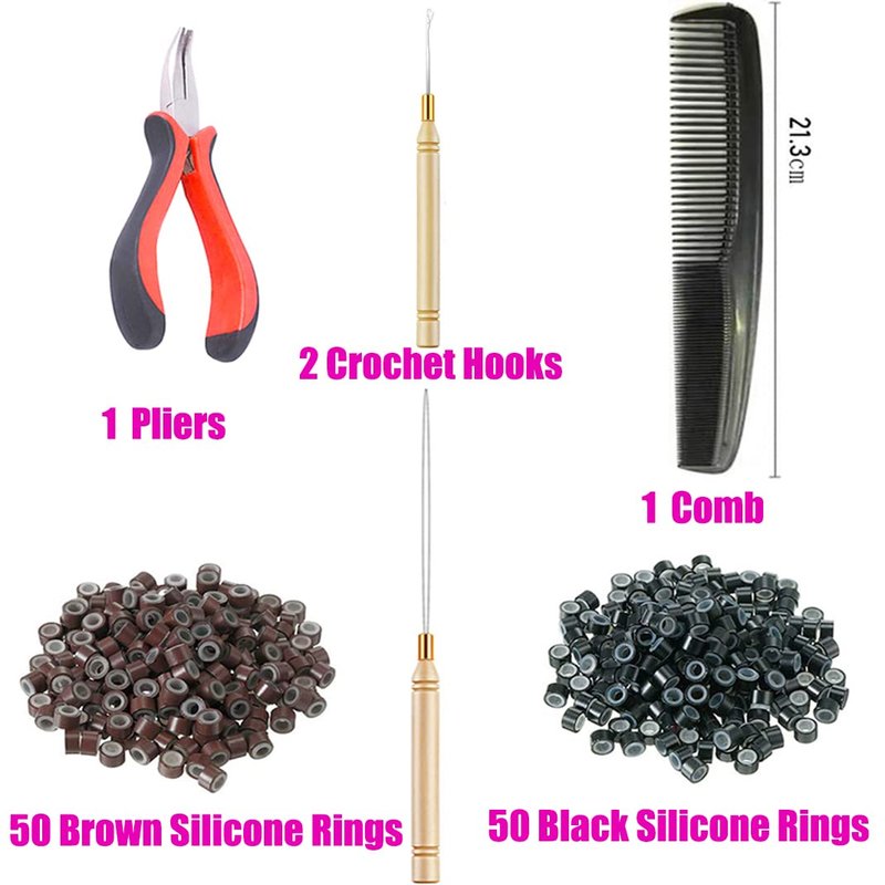 - 1.Package Includes:15 Colors (Gold, silver, purple, green,red,rose,black,lake blue,coffee,rainbow 3,white,light pink,orange,royal blue,pink),around 3000 strands hair tinsel extensions and each color around 200 strands ,10 Pieces Feather Hair Extensions, 10 Pieces Synthetic Rainbow Hair Extensions ,50 pieces black micro silicone rings beads,50 pieces brown micro silicone rings beads ,2 pieces Crochet Hooks,1 piece Pliers ,2 pieces Combs, rubber bands as gifts.