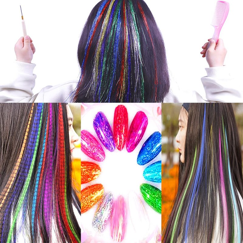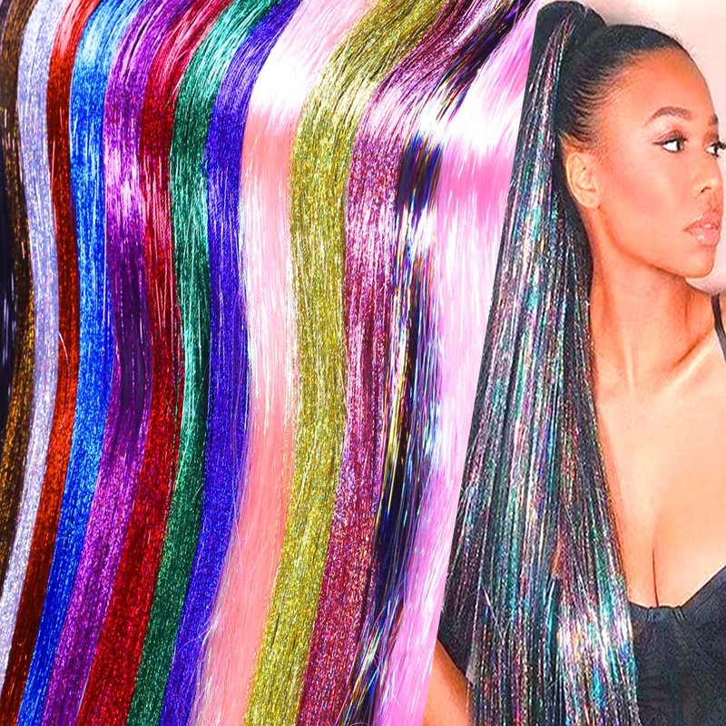 - 2.Tinsel Hair Extensions : Heat resistant,made of high quality polyester fiber,safe,odorless and will not fade,very comfortable and fashion. These glitter hair extensions are heat resistant