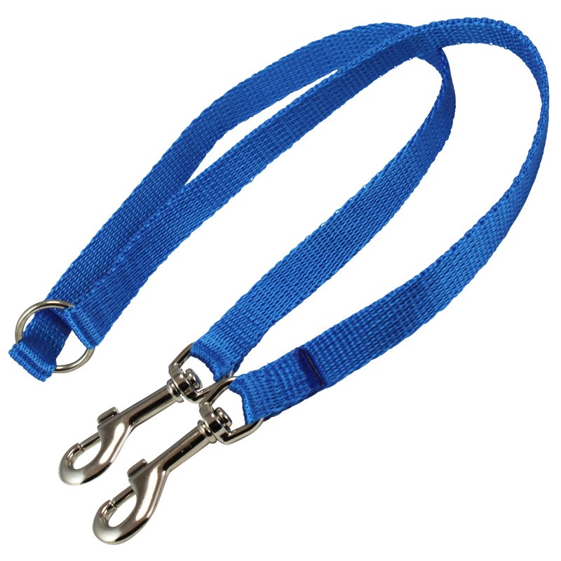 15" Nylon 2-Way Double Dog Leash - Two Dog Coupler Blue 3 Sizes (Medium: 5/8" Wide)