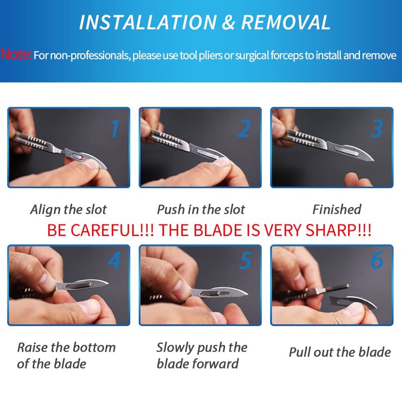 - NOTE: The blade is very sharp, please be extra careful. For non-professionals, please use tool pliers or surgical forceps for installation and removal.