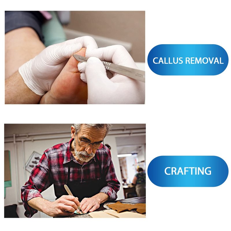 - HIGHLY VERSATILE: Great for laboratory,school, university, medical Students Dissection Practicing, Taxidermy and Mycology, Plant Cutting, Clay Modelling, Wood Model Making, Crafts Arts ,Dermaplaining or small aesthetic procedures such as callus removing, dead skin-skin tag removal and scraping, acne removal and more. etc.(Choose the right type of blade and handle according to your application)