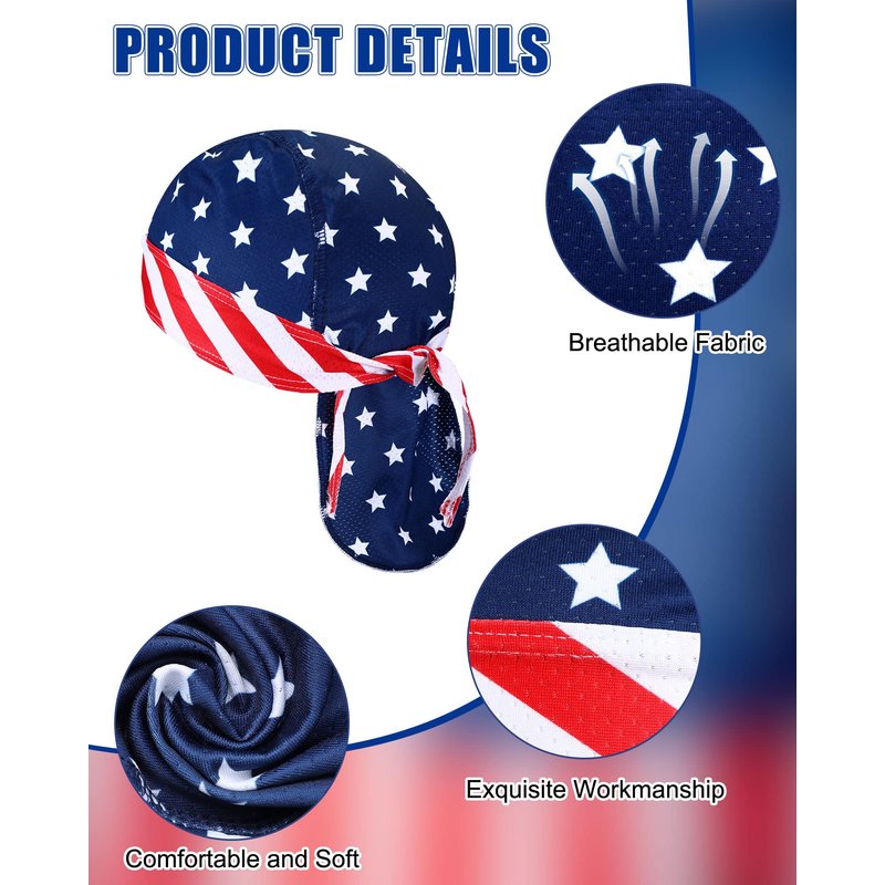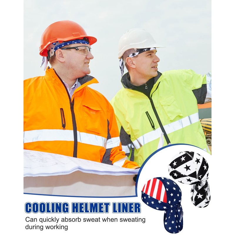 15 Pcs Do Rag Skull Cap Cooling Helmet Liner Sweat Wicking Head Wraps Bandana Beanie Bicycle Helmet Liner for Men Women (Flag Pattern)
