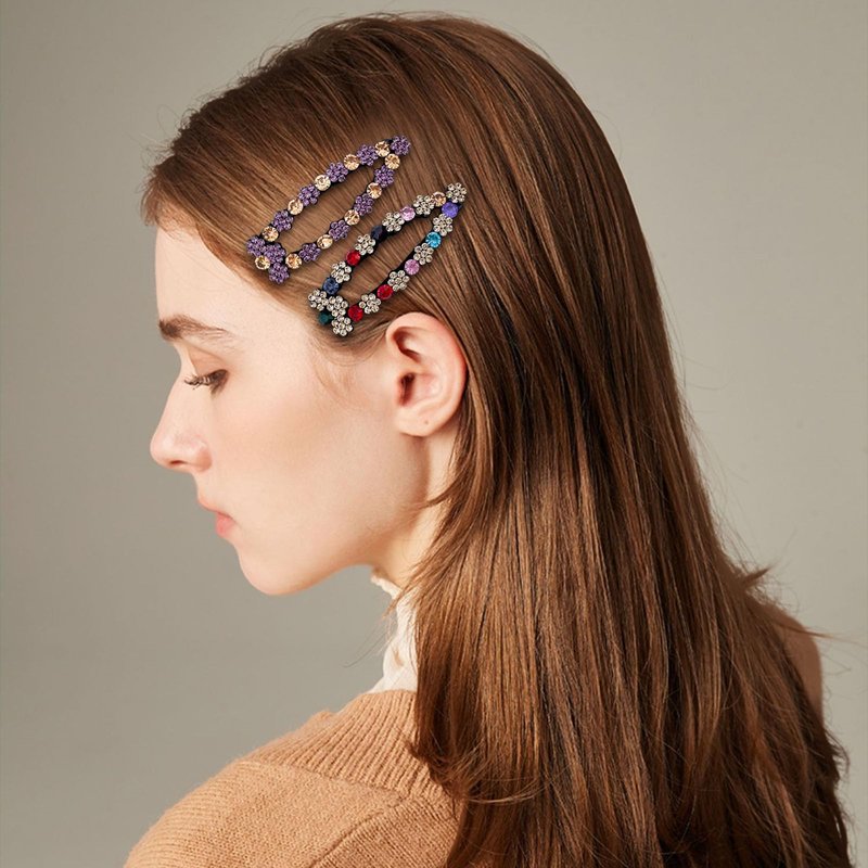 - 【Design】These glitter snap clips adopt an arc design, decorated with various colors of shiny rhinestones, and black paint on the back of the snap clips to prevent the hairpin from rusting.