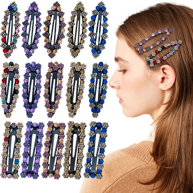 - 【Package Include】15 pcs rhinestone crystal hair clips in 3 different shapes and 5 different colors, delicate and beautiful, enough quantity for your daily use, showing your hairstyles and matching your outfits.