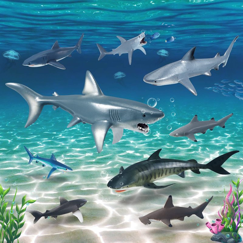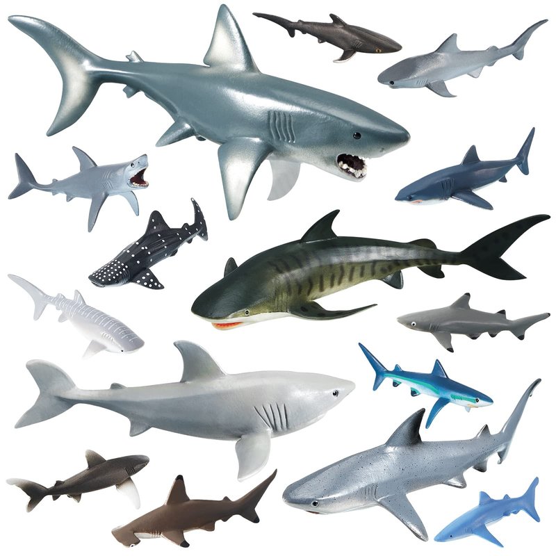 - Package Includes: you will get a set of shark figurine toys, including whale shark, hammerhead shark, tiger shark, blue shark, sickle shark, blacktip shark, megalodon shark, whitetip shark and more, totally 15 pieces shark figurines for adorable toy gifts and educational purpose