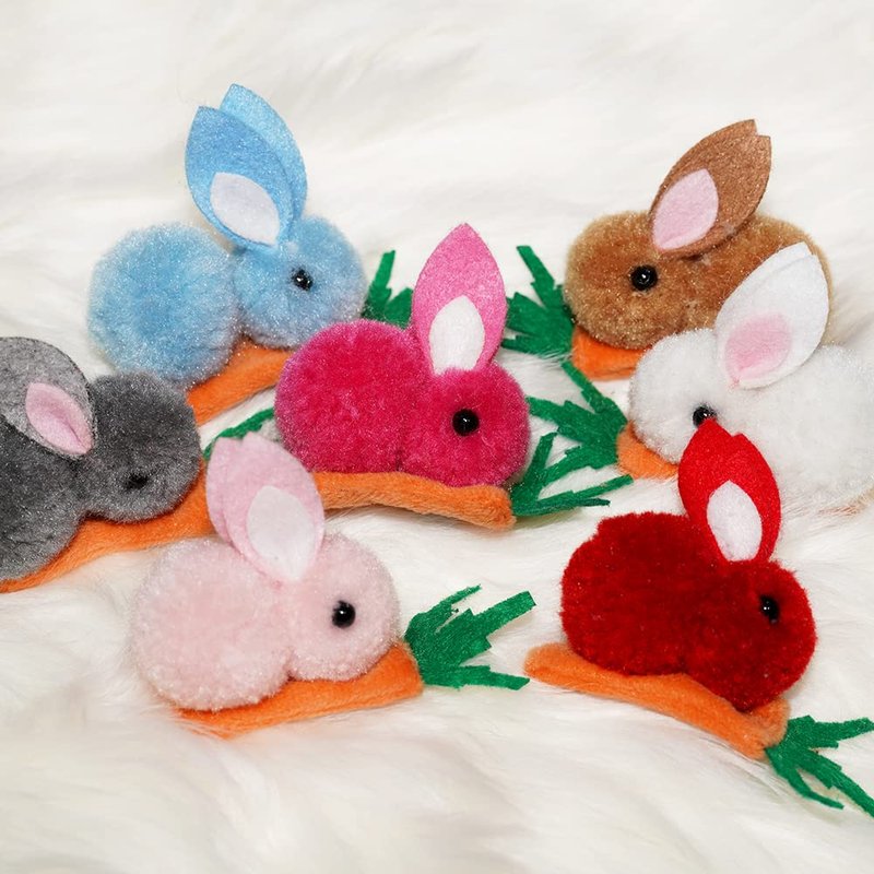 - ღ Packaged: Hairclip set include 7pcs stuffed bunnies carrots clips, colorful stuffed decoration can make girls lovely.