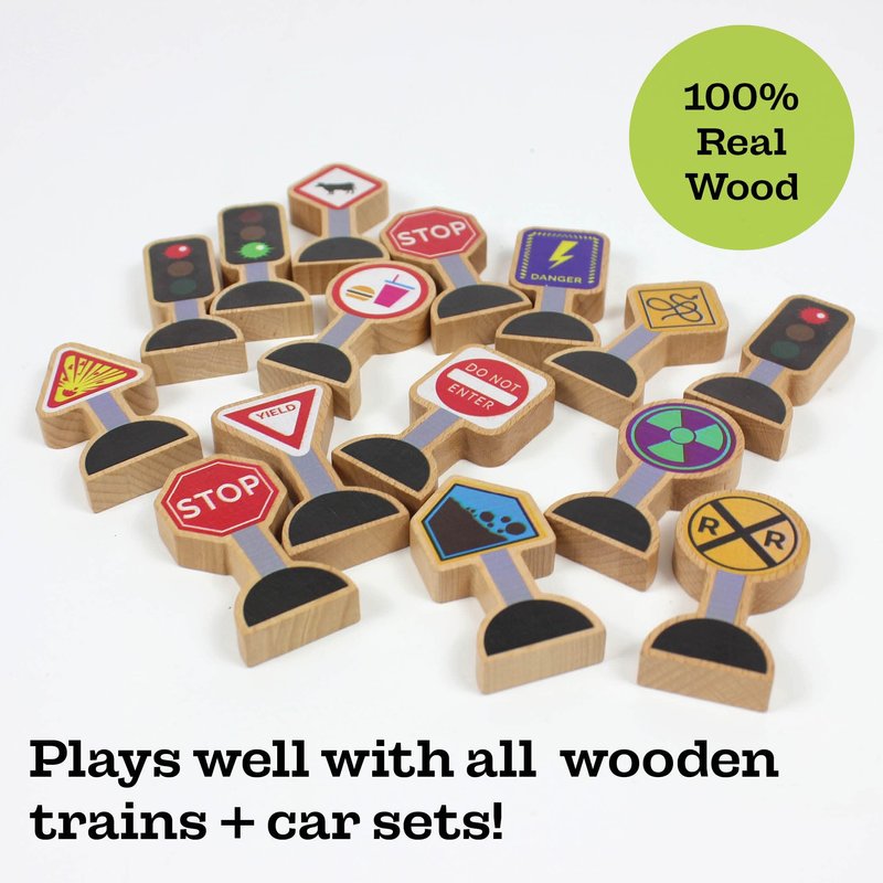 - DURABLE AND STRONG - Zany Trains Traffic Signs are made of wood, not plastic.