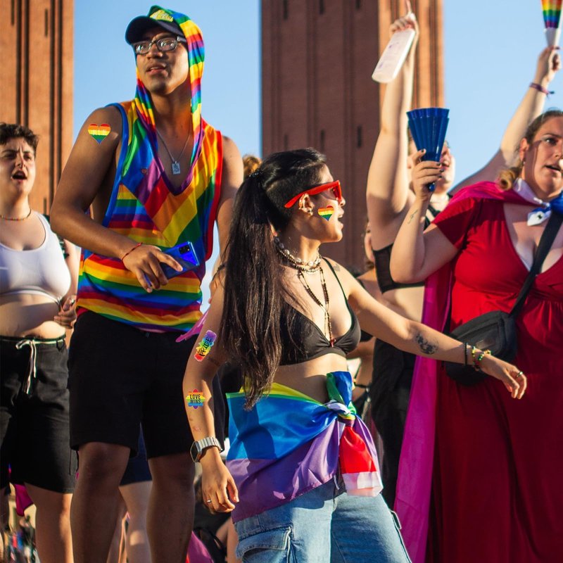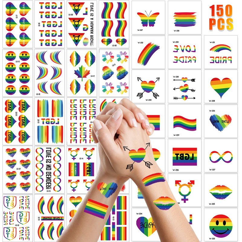 - WIDE OCCASSIONS APPLICATIONS:Our LGBTQ Rainbow Temporary Tattoo Stickers are perfect for pride festivals, parties, parades, or just to add a splash of color to your everyday look. Embrace love and diversity with these easy-to-use, high-quality gay pride accessories. One can flaunt your tattoo anywhere such as face, arms, wrists, fingers, ankles, neck, shoulders, feet and legs!