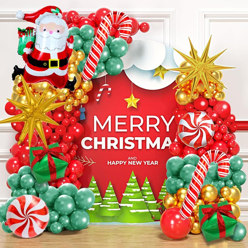 - Suitable for various occasion: Christmas balloon garland kit are perfect decorations Perfect for Christmas Xmas New Year Birthday Party, baby shower, Christmas themed party, New Year celebration, photo background etc, suit for indoor and outdoor activities. You can use them to decorate party balloon arch photography backdrop