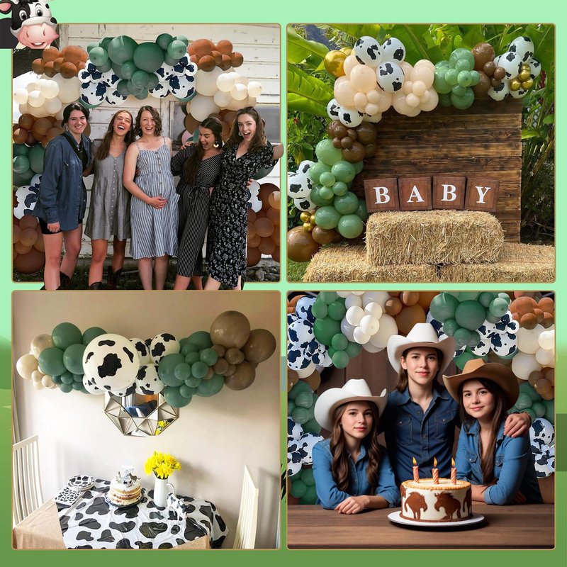 158 PCS Green Cow Balloons Arch Garland Kit Cow Party Decorations for Baby Shower Birthday Farm Western Cowboy Theme Party Supplies Decorations
