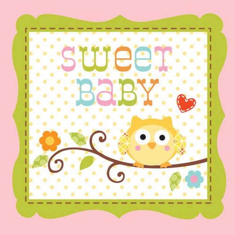 - Happi tree, sweet baby girl owl themed beverage napkins