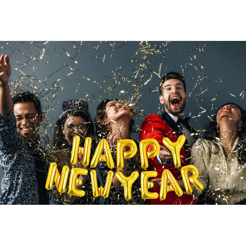 - WHAT YOU WILL RECEIVE: You will receive a set of 16-inch Gold Happy New Year Letter Balloons (uninflated), along with a 33-foot roll of ribbon and one straw. These Happy New Year Letter balloons are designed to fulfill your balloons needs for a New Year-themed party.