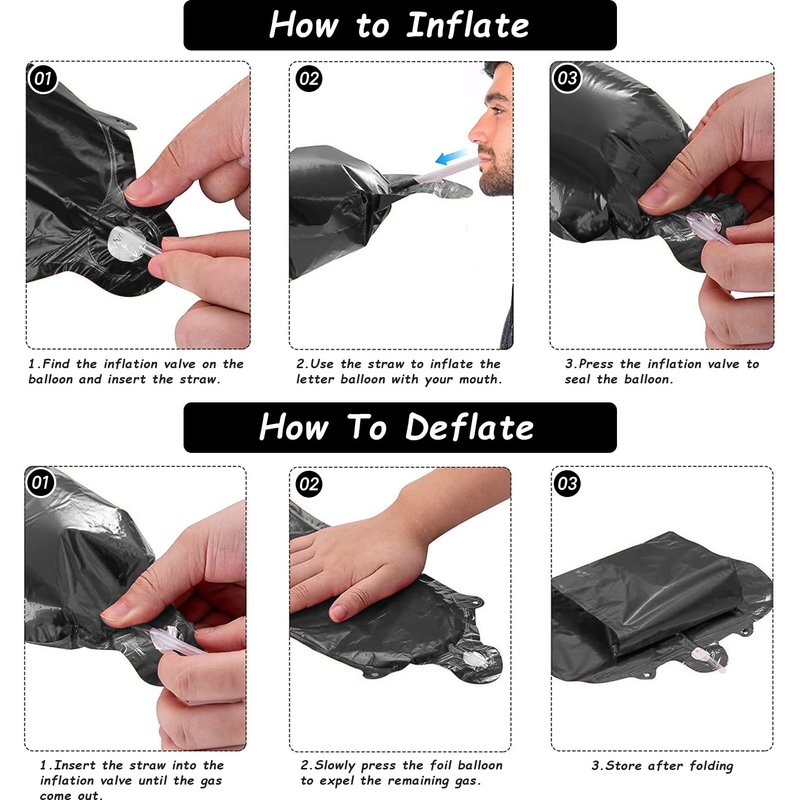 - ✨ Repeated Use ✨ - The black happy birthday balloon banner kit contains a straw that can also be used to deflate each letter foil balloon, simply insert the straw into the valve and press gently until the gas is completely expelled. After use, it can be folded and stored for reuse.