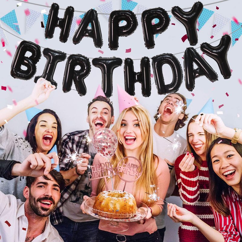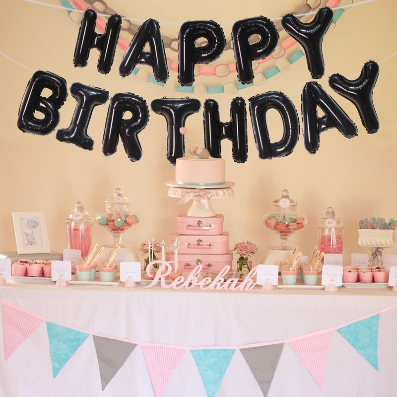 - 🎁 Perfect Birthday Party Decorations 🎁 - The black 'HAPPY BIRTHDAY' foil letters balloon banner is ideal for girls women birthday party, as a backdrop or photo props. You can hang the lovely birthday balloon bunting banner in the kitchen, living room, or party room to surprise your family or friends and show them how much you care about the birthday!