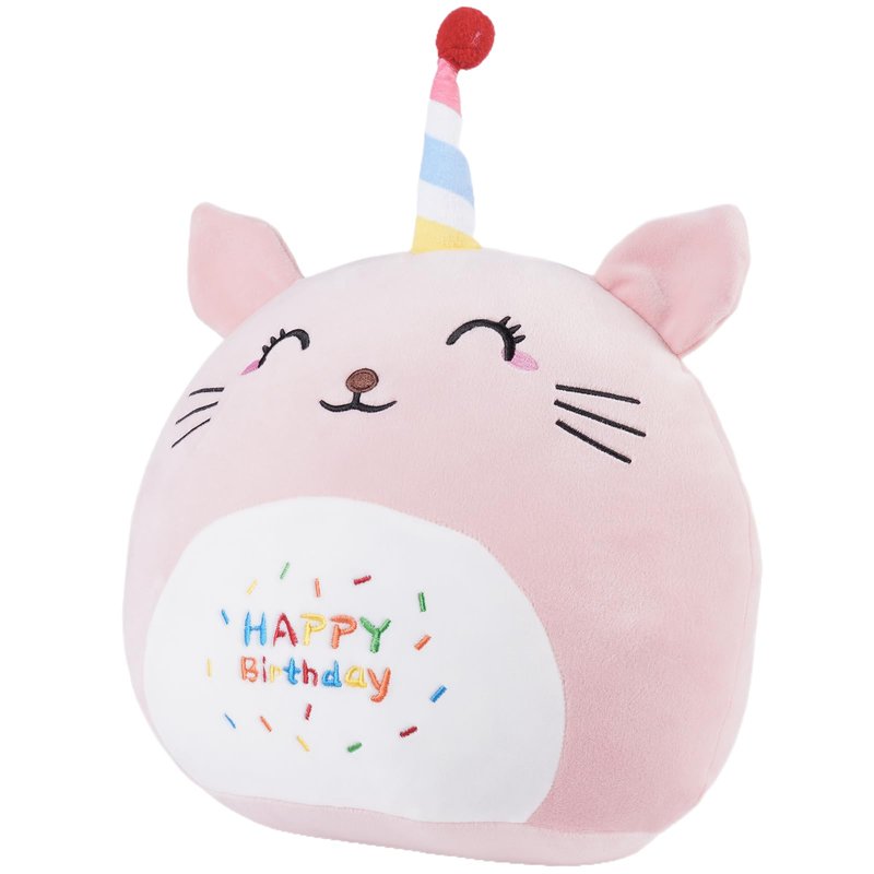 - PERFECT GIFT ROUND BIRTHDAY KITTEN PLUSH- Our happy birthday cat plush toys appeal to all ages, from toddlers to adults, perfect for play, collecting & cuddling. Everyone will love this happy birthday kitty plushy pillow for play & as a cute happy birthday kitty pillow for reading, watching television, studying, and sleepy nap time. It is really comfortable to hold and support your lumbar. Sweet present for Christmas, Valentine's Day,Thanksgiving Day and birthday.