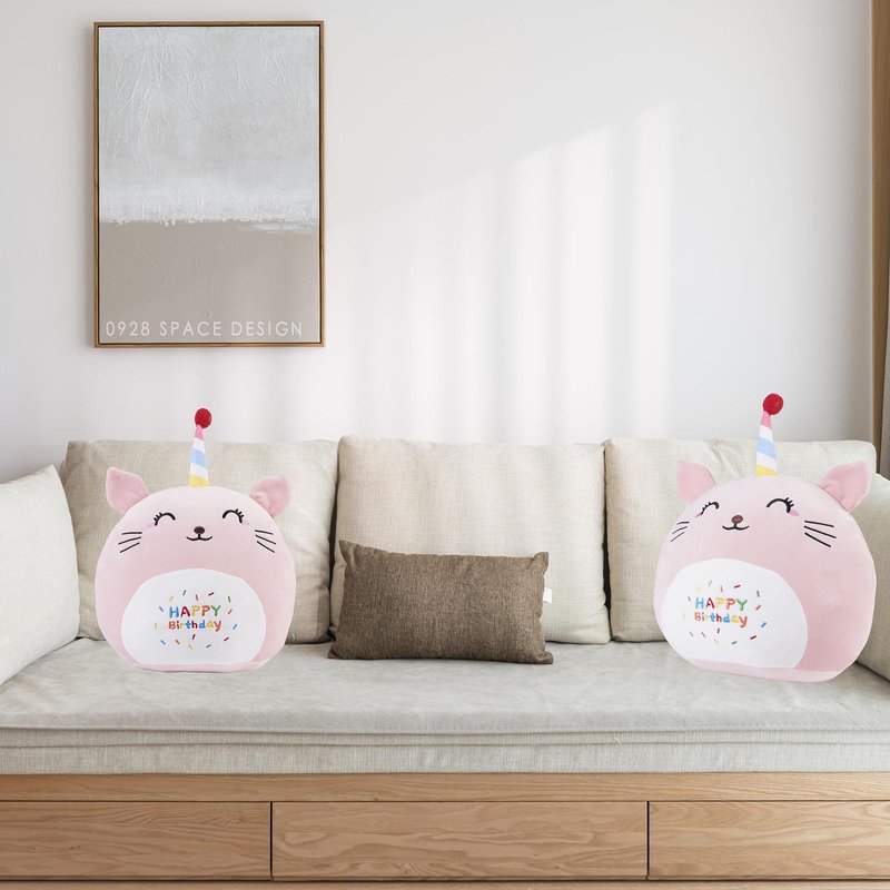 The pink cat stuffed pillow is Made with super-soft plushie material and high-density stuffing that ensures our happy birthday kitty plushies maintain their squeezability, even with repeated hugs!