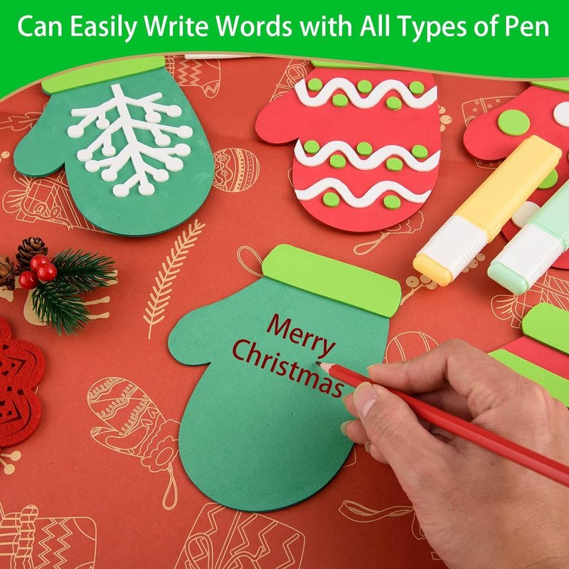 • Safe Foam Material: the foam Christmas mitten cutouts are made of quality foam material, durable and not easy to break, lightweight and harmless, soft to touch, and smooth surfaces allow you to write and draw quickly; Please note: these Christmas mittens are not self-adhesive