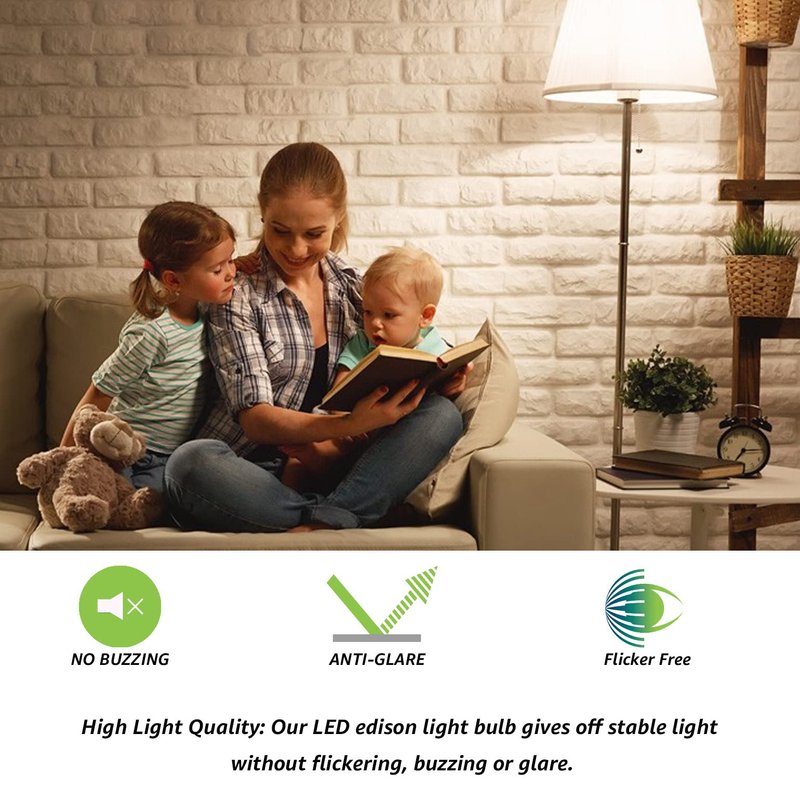 - High Light Quality: The vintage led bulbs adopt high efficiency driver, emit ambient light without buzzing, new LED filament bulb tech anti-glare and without flickering.