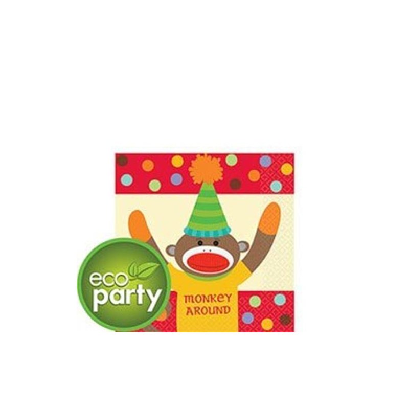 16 pc Sock Monkey Birthday Party Beverage Napkins