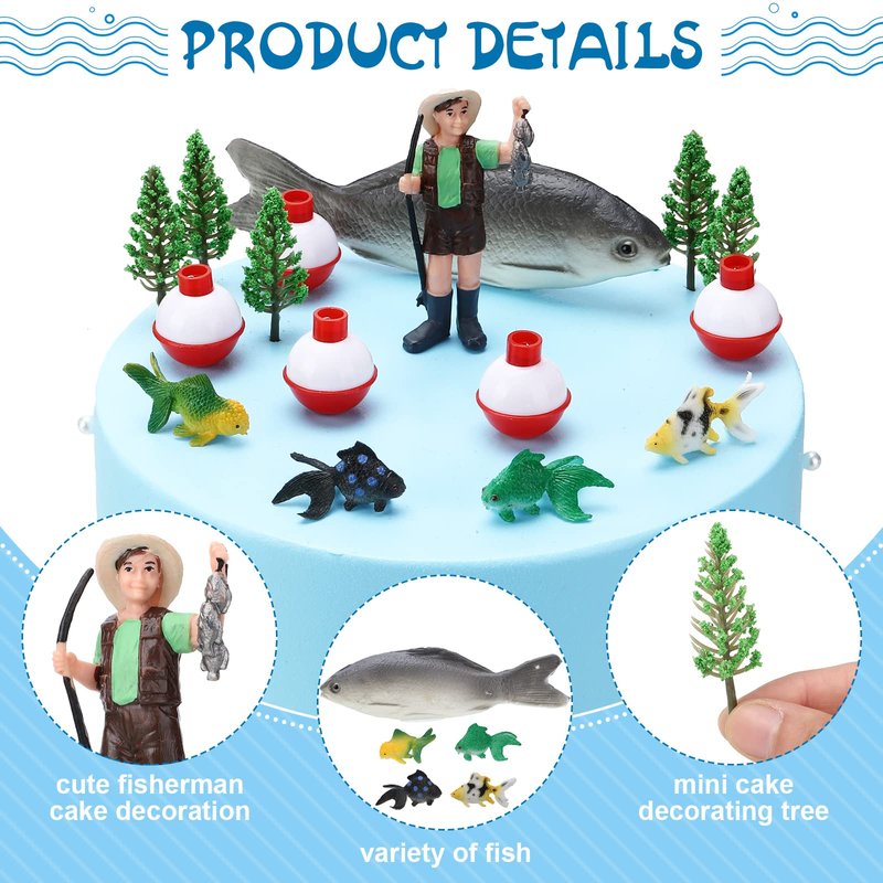 - Fishing Party Decorations: these fishing party supplies come with 16 pieces of cake decorations, including 1 piece of fisherman with action fish ornaments, 1 piece of grey fish, 4 pieces of goldfish, 5 pieces of small decorative trees, 7 pieces of fishing buoys, plenty of quantity and variety styles add novel ideas and different visuals to your party