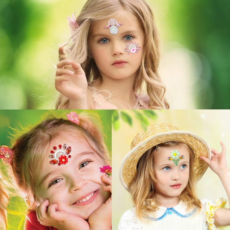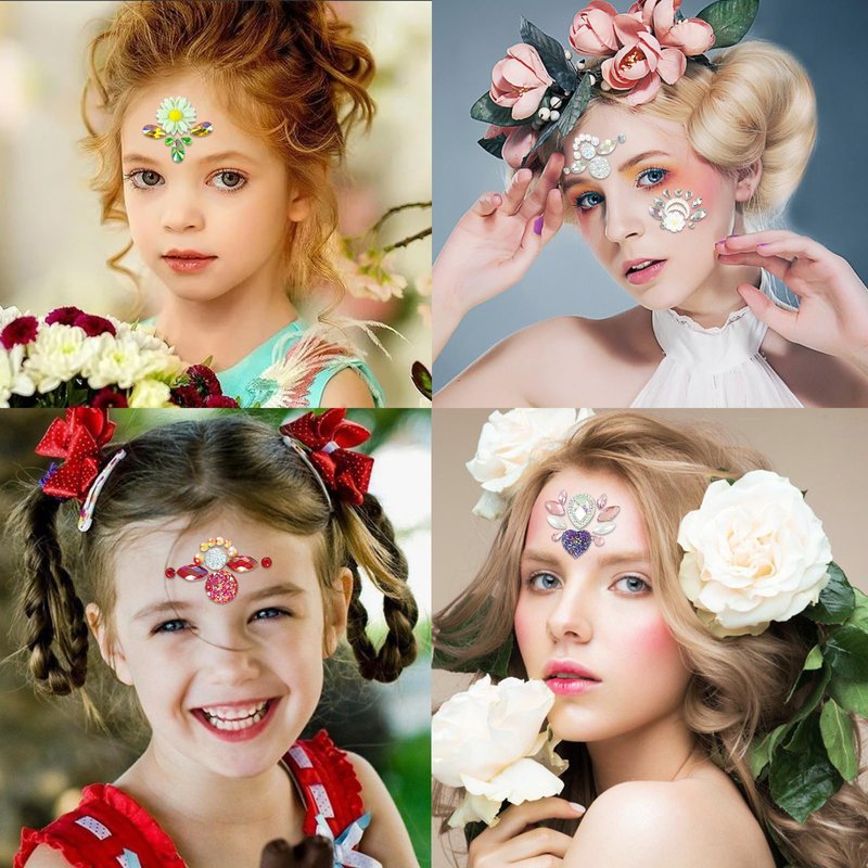 - Design: Our diamond stickers come in a wide variety of patterns, including flowers, polka dots, water drop shapes and more (see picture). You can make up your face, forehead, eyebrows and other parts DIY according to your preferences.