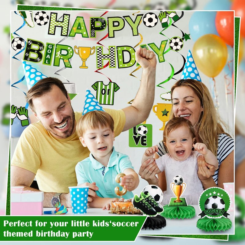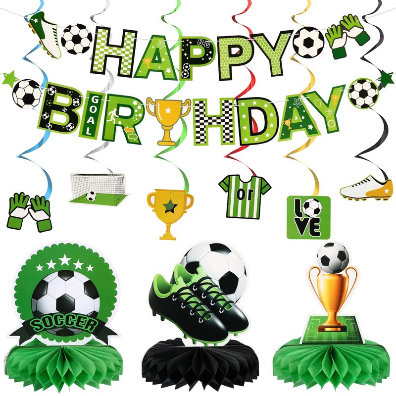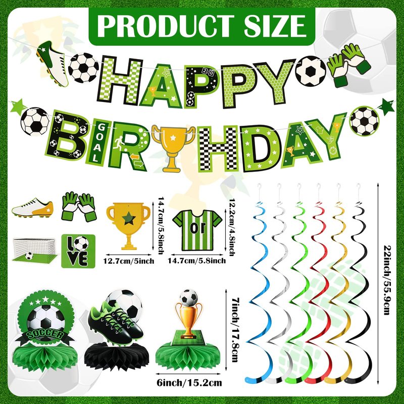 - Sufficient Soccer Birthday Party Supplies: the package comes with 16 pieces soccer party supplies, including 1 piece soccer ball banner, 6 pieces soccer themed hanging swirls, 6 pieces soccer hanging cutouts and 3 pieces soccer honeycomb decorations; They are a nice combination for you to decorate your soccer parties