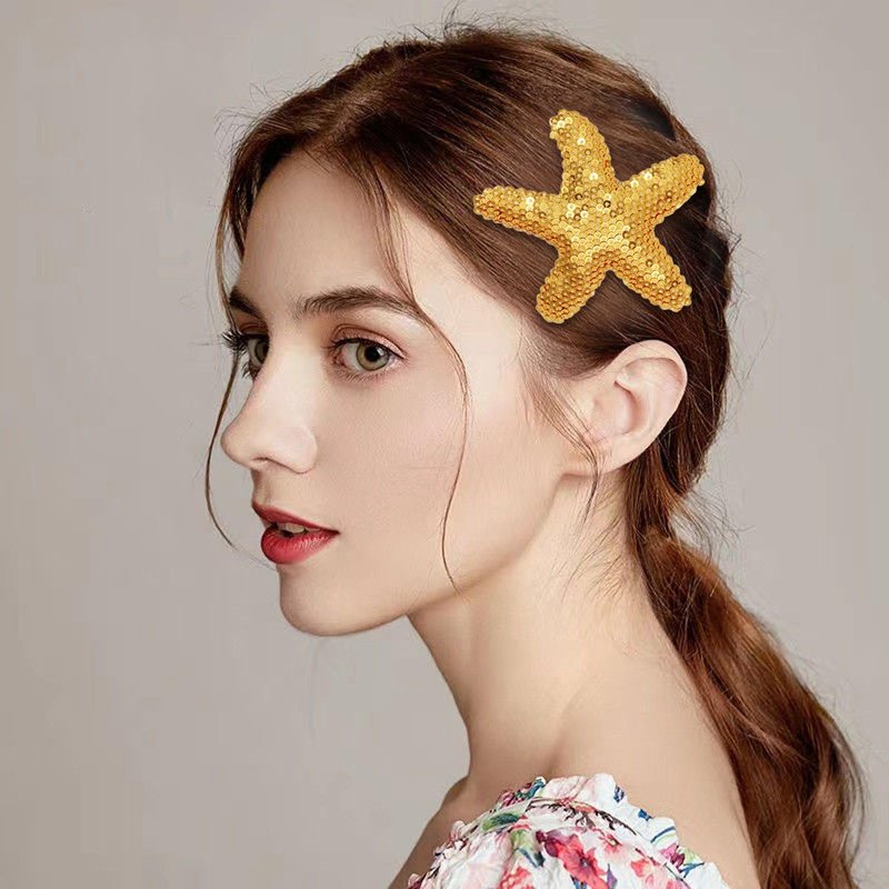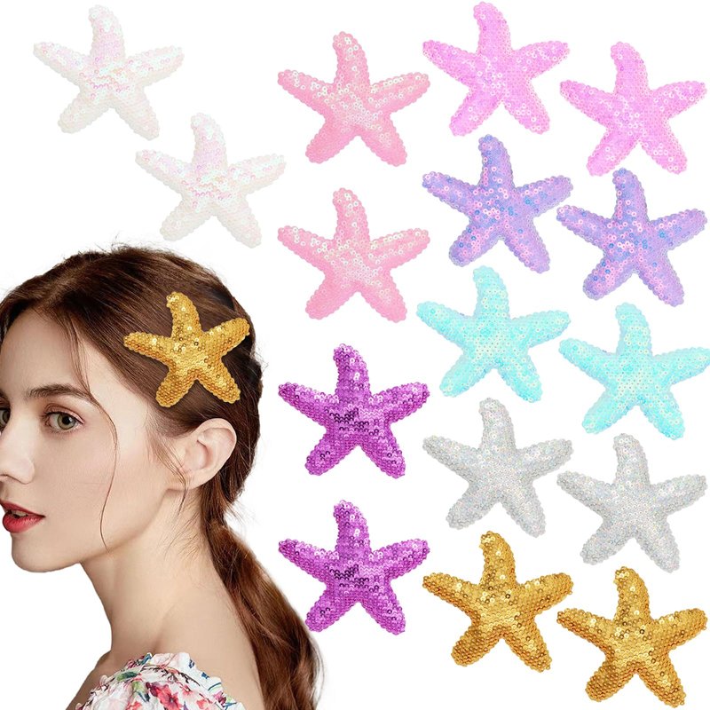 16 Pcs Starfish Hair Clips Sequin Glitter Sea S...