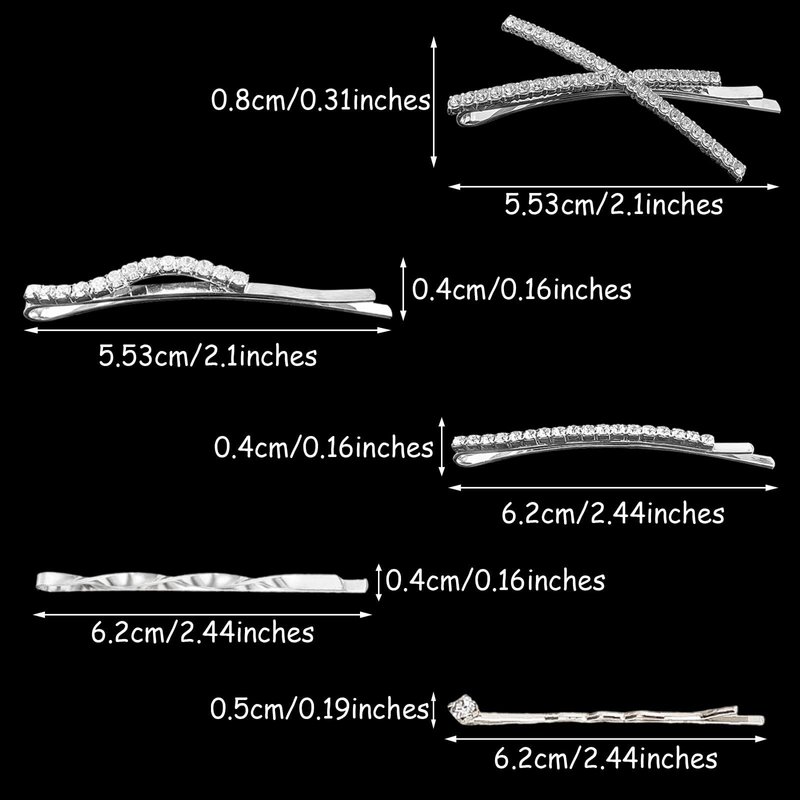 X-shaped rhinestones hair clip: 5.33 x 0.8cm/2.1 x 0.31inches (L x W)