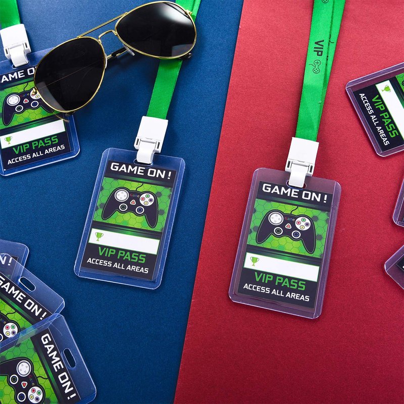 Our VIP passes with lanyard are printed with game patterns and words on both sides, mainly in green, black and white colors, classic for game party, fit the theme of game themed party and can add more fun to your daily life.