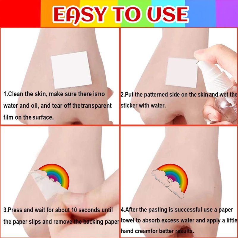 - Widely Used: Rainbow temporary tattoo stickers are very suitable for birthday parties, Christmas, and special celebrations. These fake tattoos are interesting decorations suitable for all ages, both adults and kids can have a good time together