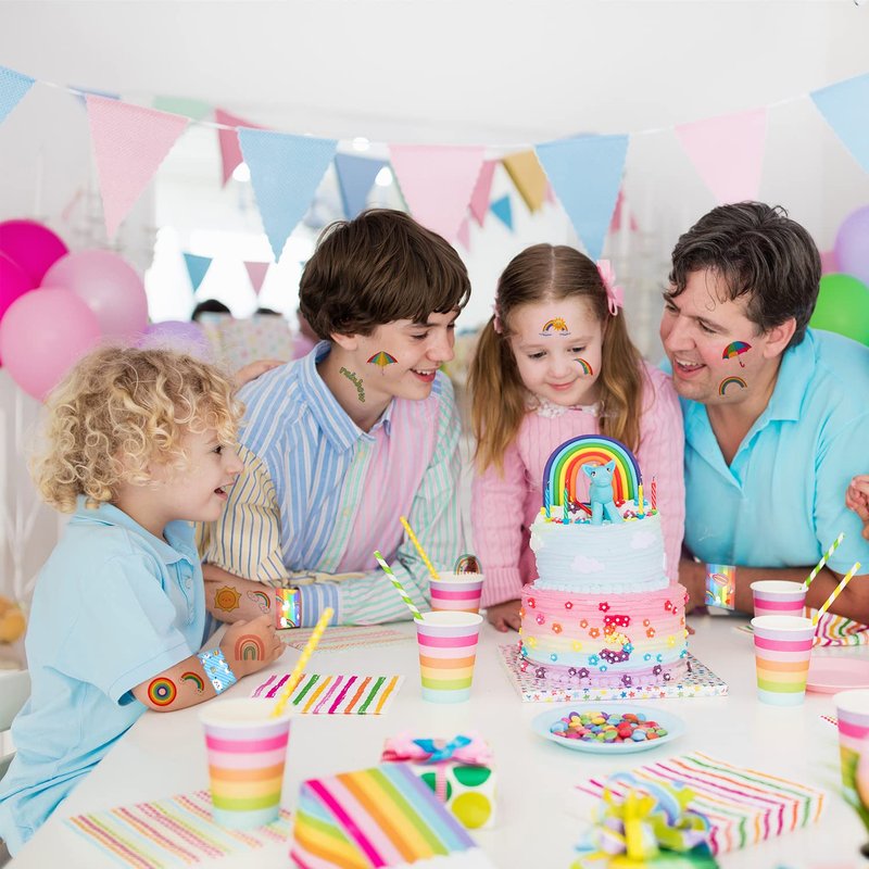 - You Will Love These Tattoos in Your Party: You will love having these wonderful rainbow party supplies for your big day, and your guests will love them as well. They add vibrant style to your birthday party, family night, party and/or other fun gathering