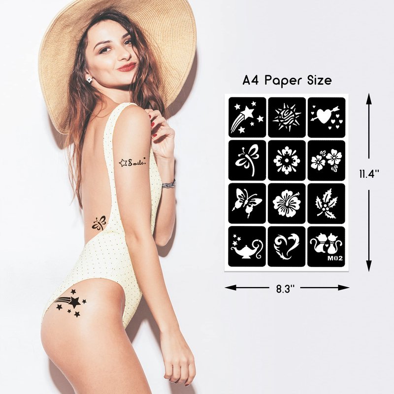 - 🙊Easy to Use - The body art stencils are adhesive and removable, just find the one you like and stick it on your body, and fill in the hollow, and then tear off it, done!