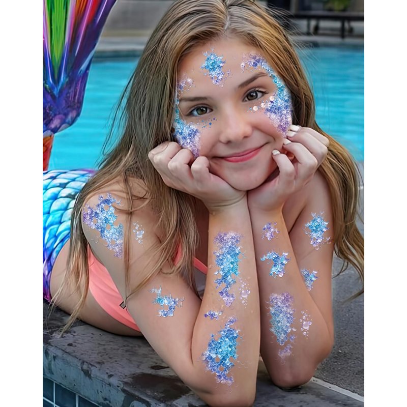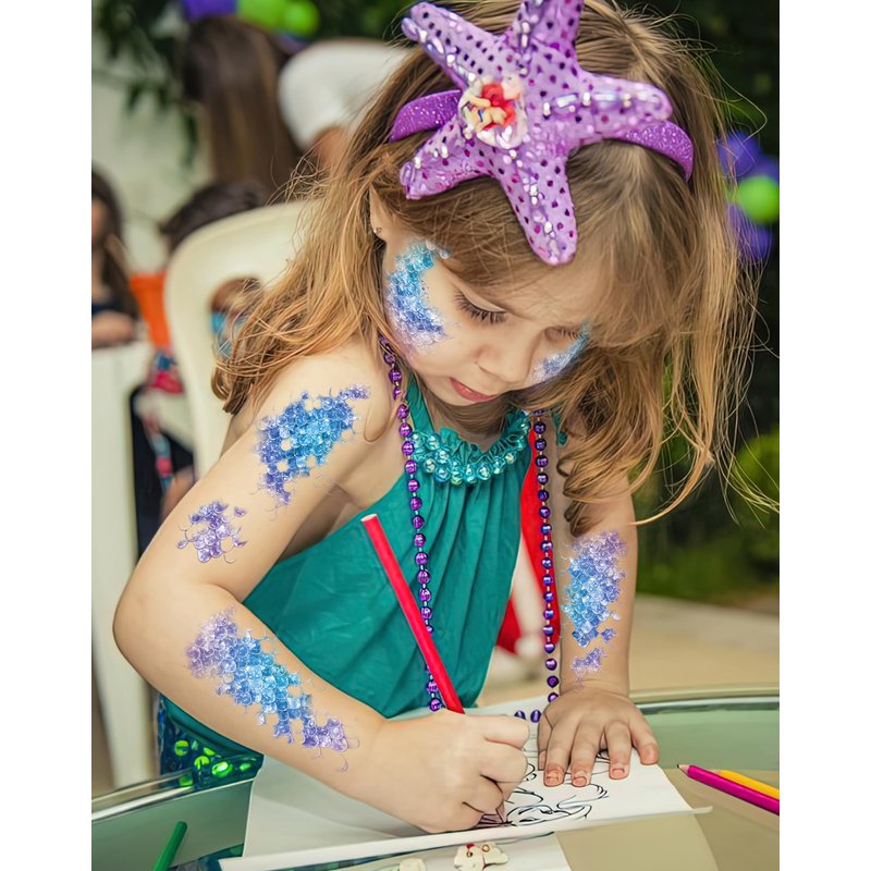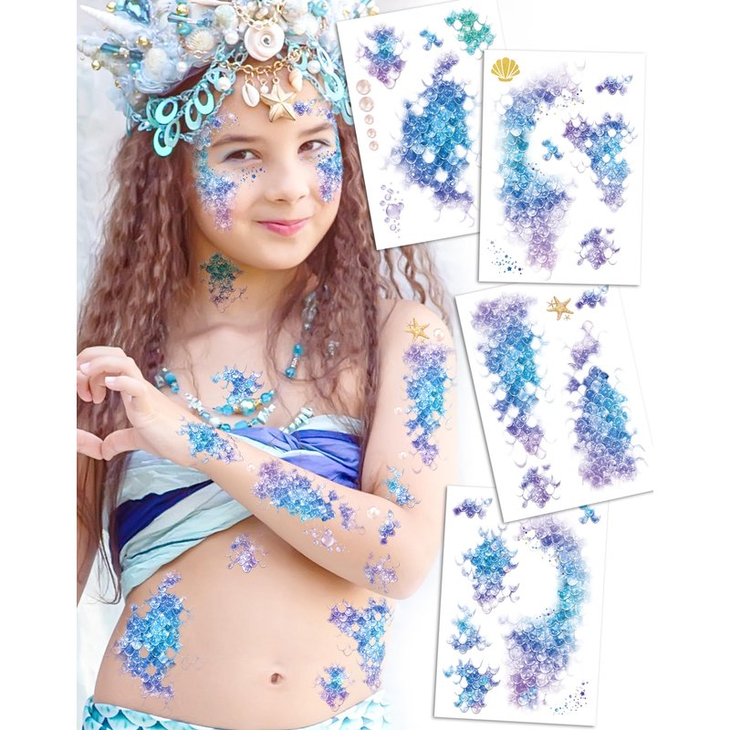 - Girl Temporary Tattoos: These mermaid scale temporary tattoos double as mermaid accessories for girls, adding a splash of color to any outfit. They're also great as mermaid stickers for girls, making them a versatile addition to your little mermaid decorations.