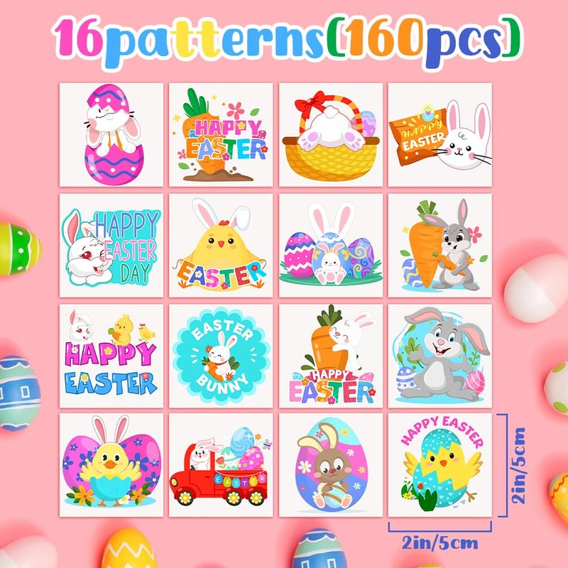 160PCS Temporary Easter Tattoos for kids 2 Inch Fake Tattoo Stickers with Easter Eggs Rabbits Chicks Easter Basket Stuffers Goodie Bag Fillers Easter Decorations Party Favors Supplies for Boys Girls