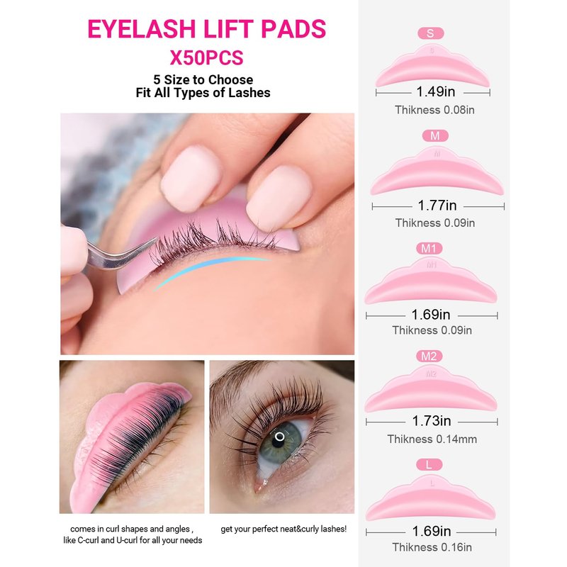 - 5 Sizes Silicone Eyelash Pads:Tailored to fit most eye shapes, our pads come in sizes S, M, M1, M2, and L. For beginners, we recommend starting with the S size. These eyelash perming pads are reusable and can be easily cleaned with water