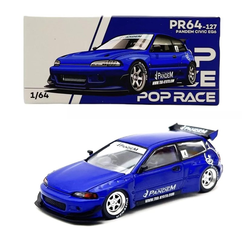 1:64 Diecast Model Car Compatible with Honda Civic (EG6) v1.5 PANDEM in Metallic Blue Limited Edition By Pop Race PR640127