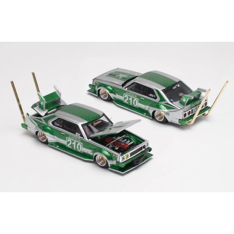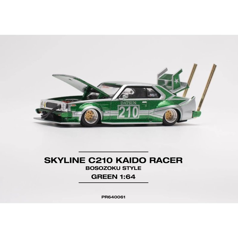 1:64 Scale Diecast Model Car Compatible with Nissan Skyline C210 Kaido Racer Bosozoku Style Silver/Green Limited Edition By Pop Race PR640061