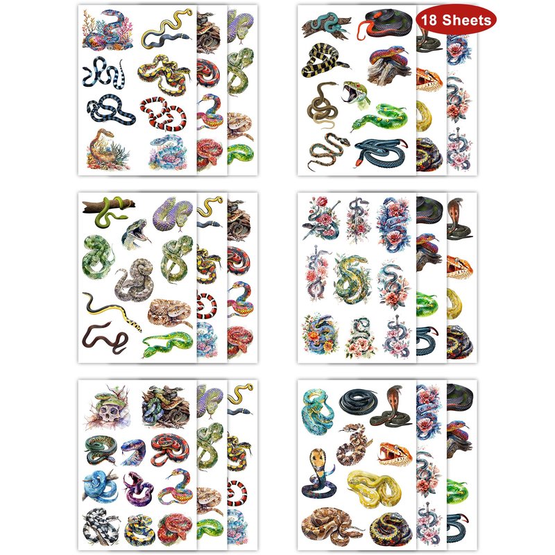 - Snake Theme Party Decorations Design,18 sheets with 168 pieces of Reptile temporary attoos in 25 styles with vividly colorful psychedelic art from Snake