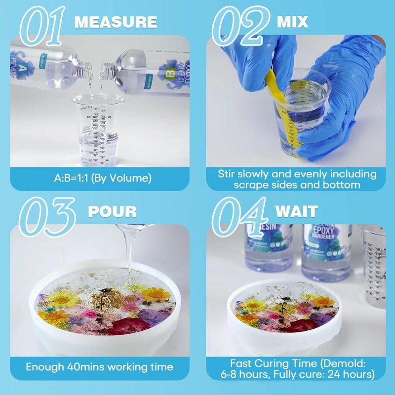 - 💎Your Affordable Choice - Our resin has 1-year shelf life. If you received cloudy epoxy resin, no worries it is not expired, caused by the cold temperature. Preheat AB bottles seperately, warm up between 75 (℉) and 78 (℉) before mixing. Please feel free to contact us if any doubts during using, we will ensure you a 100% satisfactory result within 24 hours.