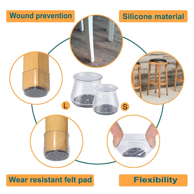 - 【The felt pad will not fall off】The package includes 16 pieces. Our upgraded silicone chair leg cover is equipped with a felt pad. We combine the felt and silicone into an integral part.