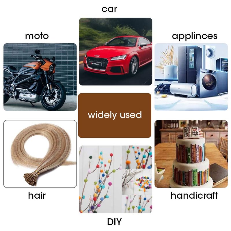 - Multi-Function Bonding Tools: Wide range of application, fast curing and good thermal stability.Suitable for the bonding of wig, wood, metal, glass, fabric, ceramic, card, etc.
