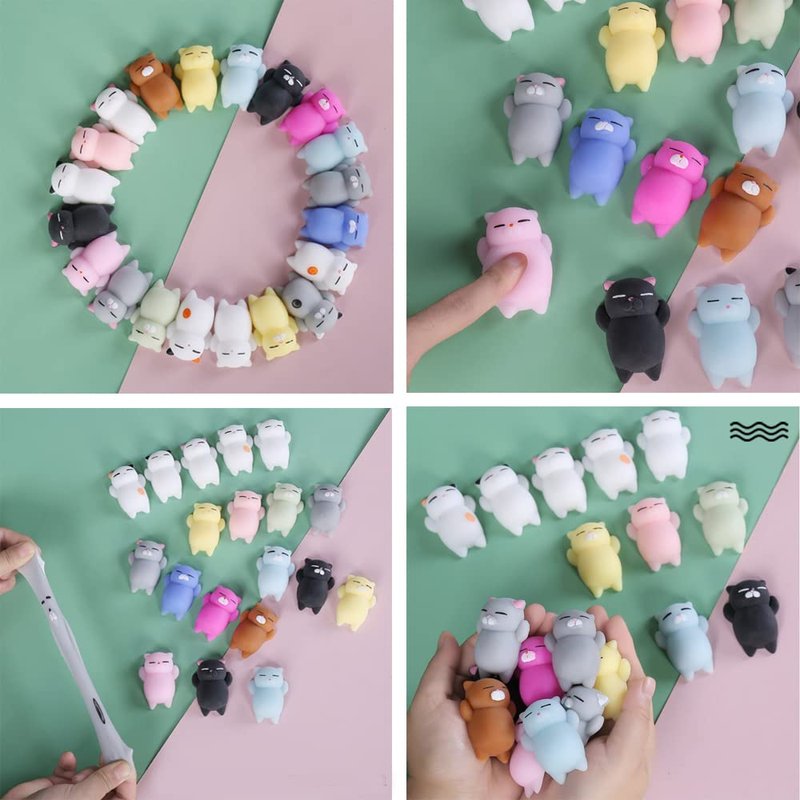 - 【CUTE DESIGN】These stress relief toys come with cute cat design and vibrant color. you can poke, pull, and squeeze squishies toys, release stress and anxiety, get rid of boredom.