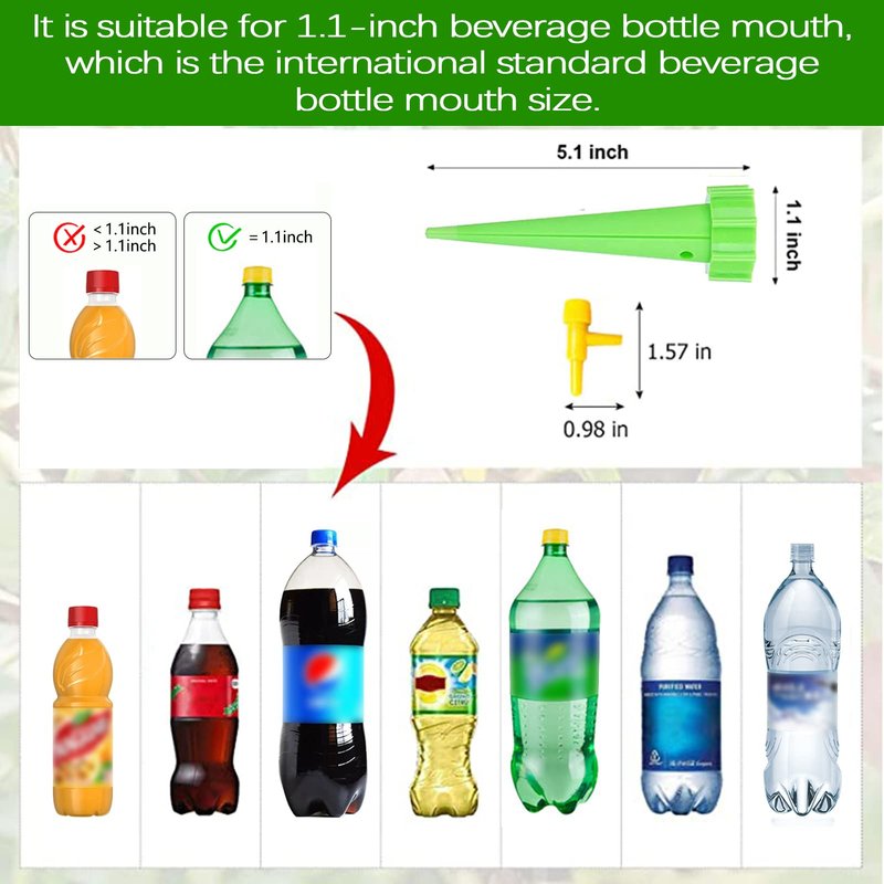- 【Easy to operate】 Just screw the beverage bottle on (suitable for 1.1 inch beverage bottles), then gently tie a hole at the bottom of the bottle, or you can cut the bottom of the bottle and then insert the bottle into the soil.
